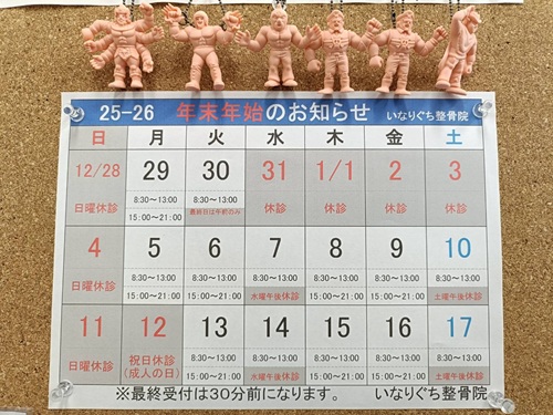 12月30日(火) 午前診療のみ(8:30〜13:00)